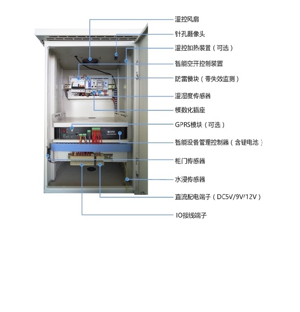 機(jī)柜內(nèi)置智能設(shè)備管理控制器、供配電單元、智能空開模塊、防雷單元、自動(dòng)溫控系統(tǒng)、防盜錄像模塊及各類傳感器,各模塊根據(jù)實(shí)際需求靈活可選,機(jī)柜尺寸可定制。